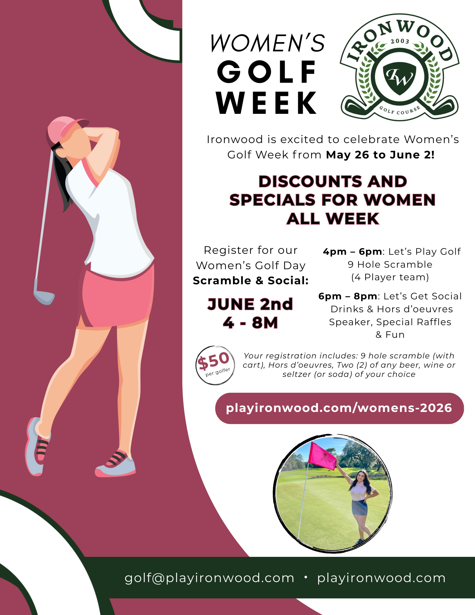 Register today for our Women’s Golf Day Scramble at Ironwood! SPACE IS LIMITED